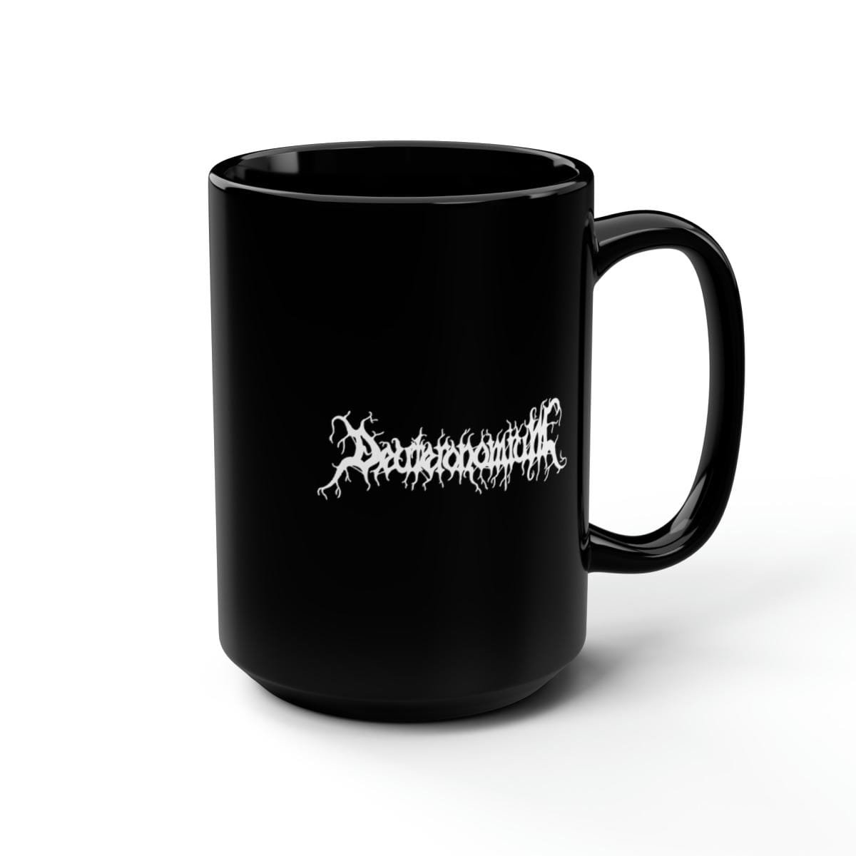 Deuteronomium White Logo 15oz Black Mug