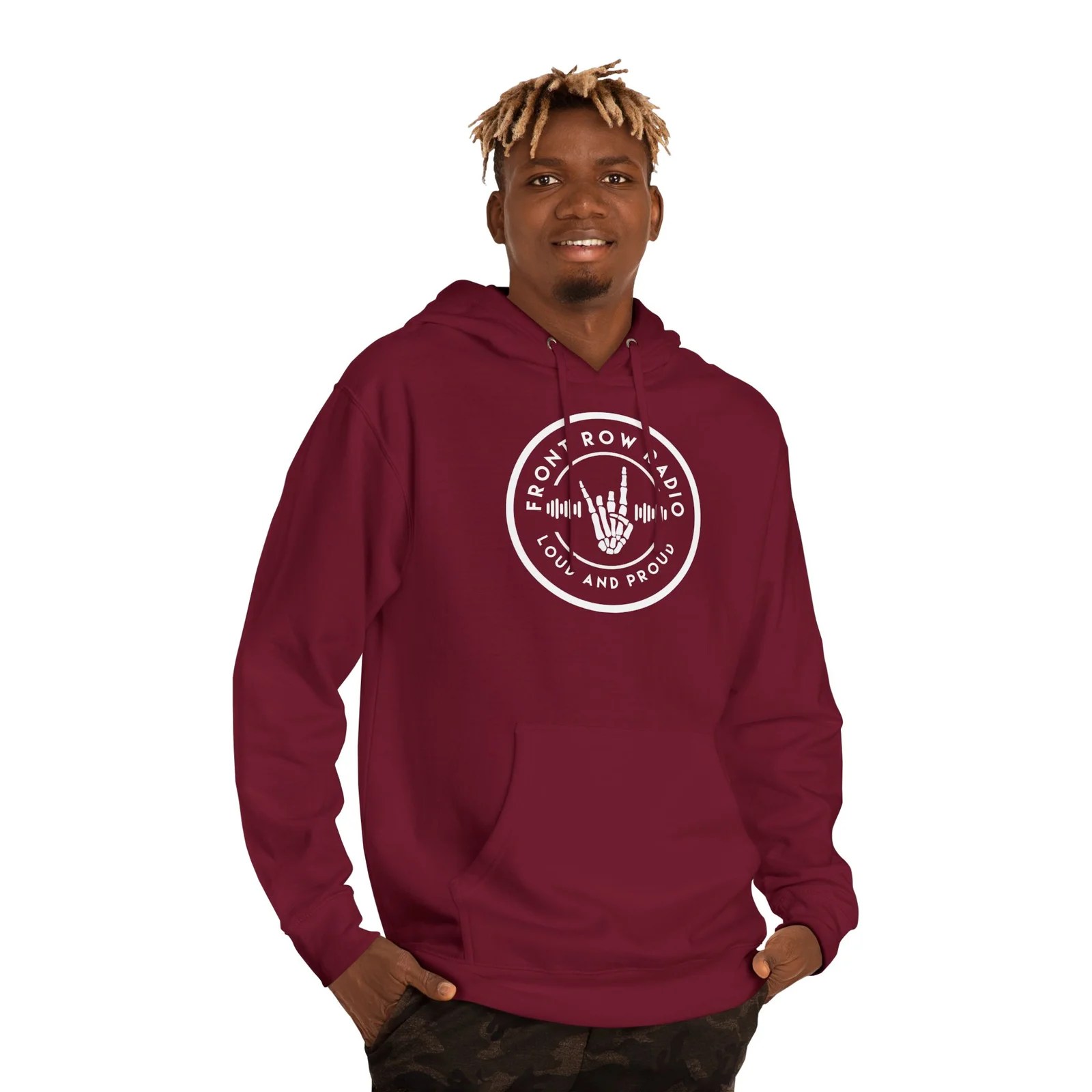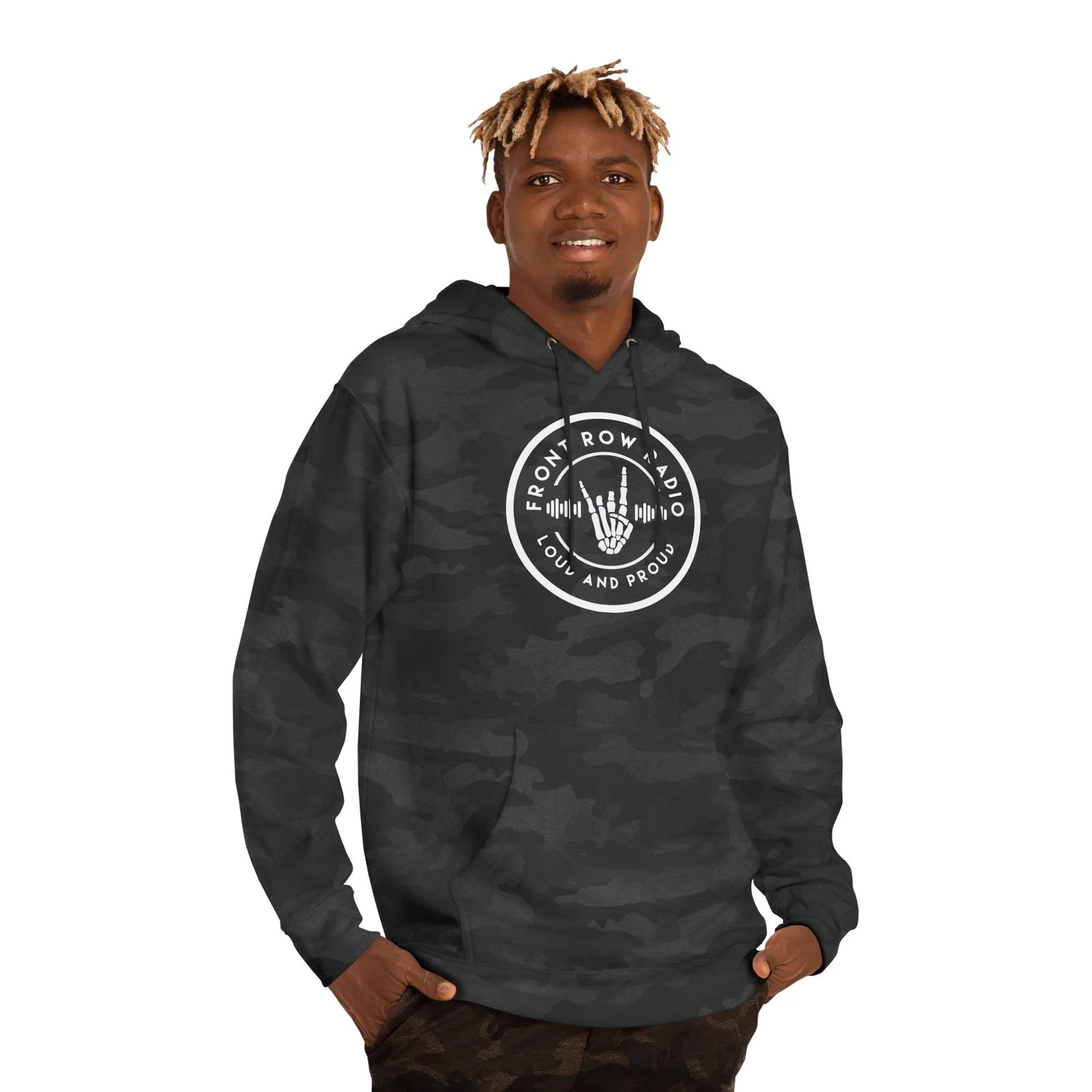 – Adjustable hood with drawstrings allows for a customizable fit.