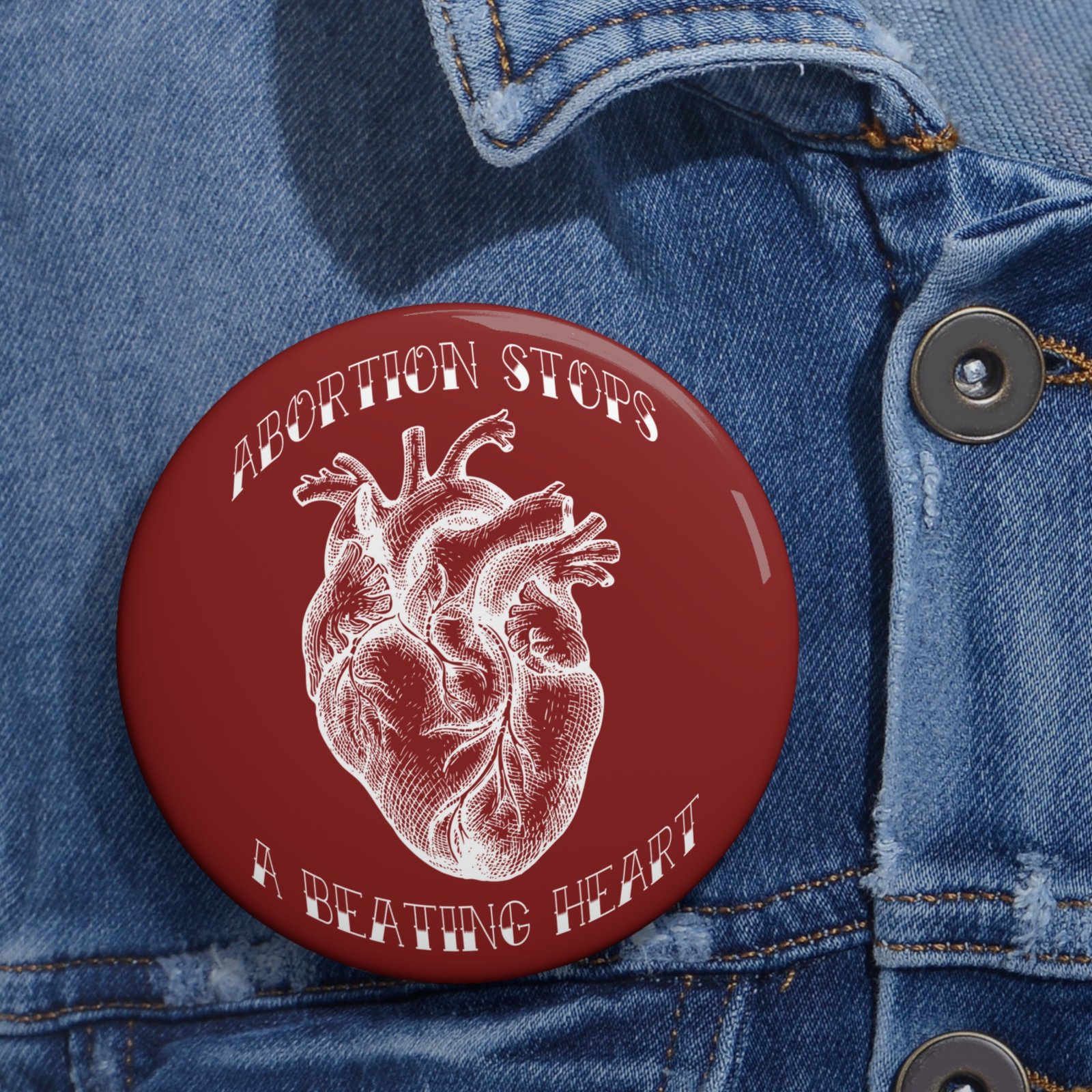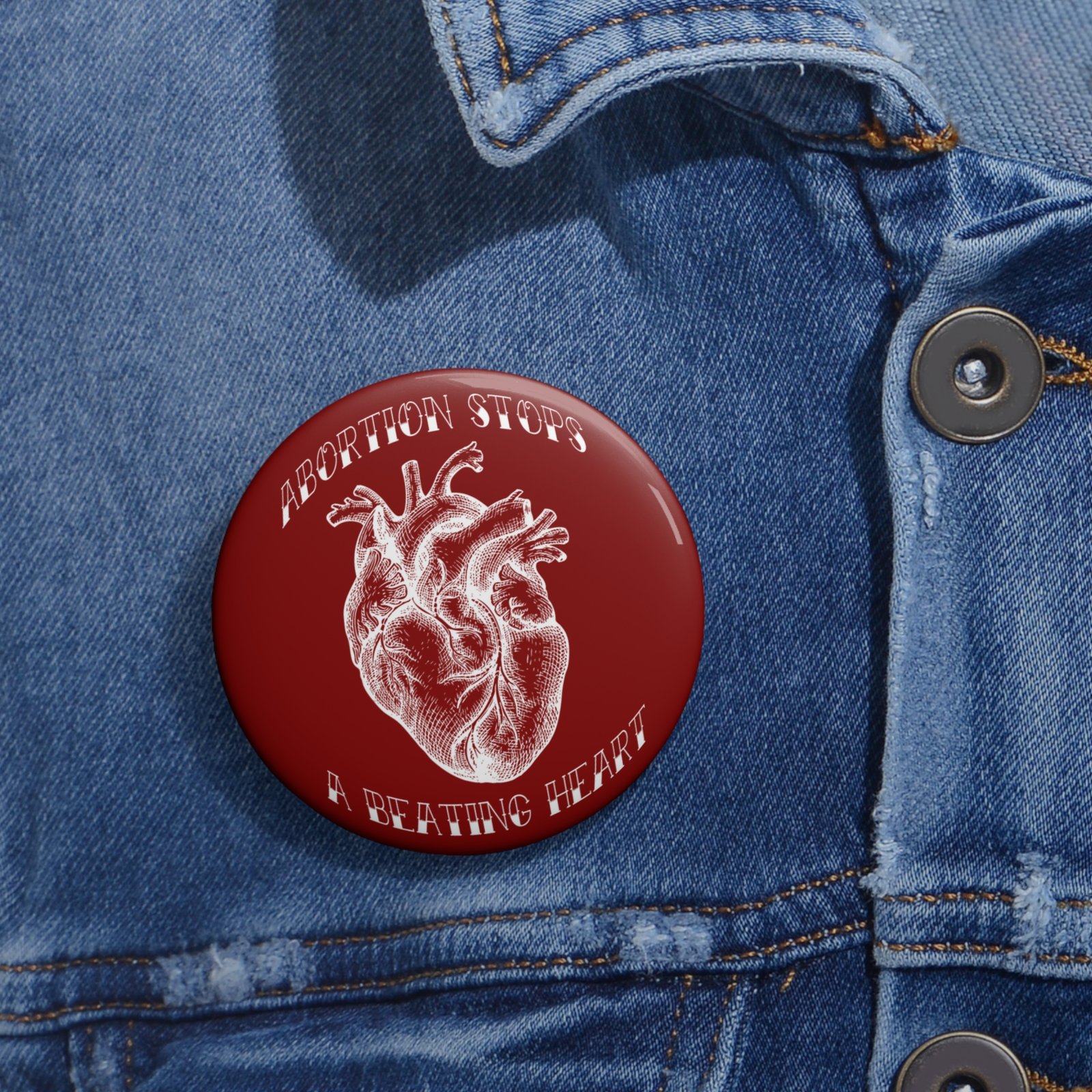 Rock For Life – Abortion Stops A Beating Heart Pin Buttons (Red)